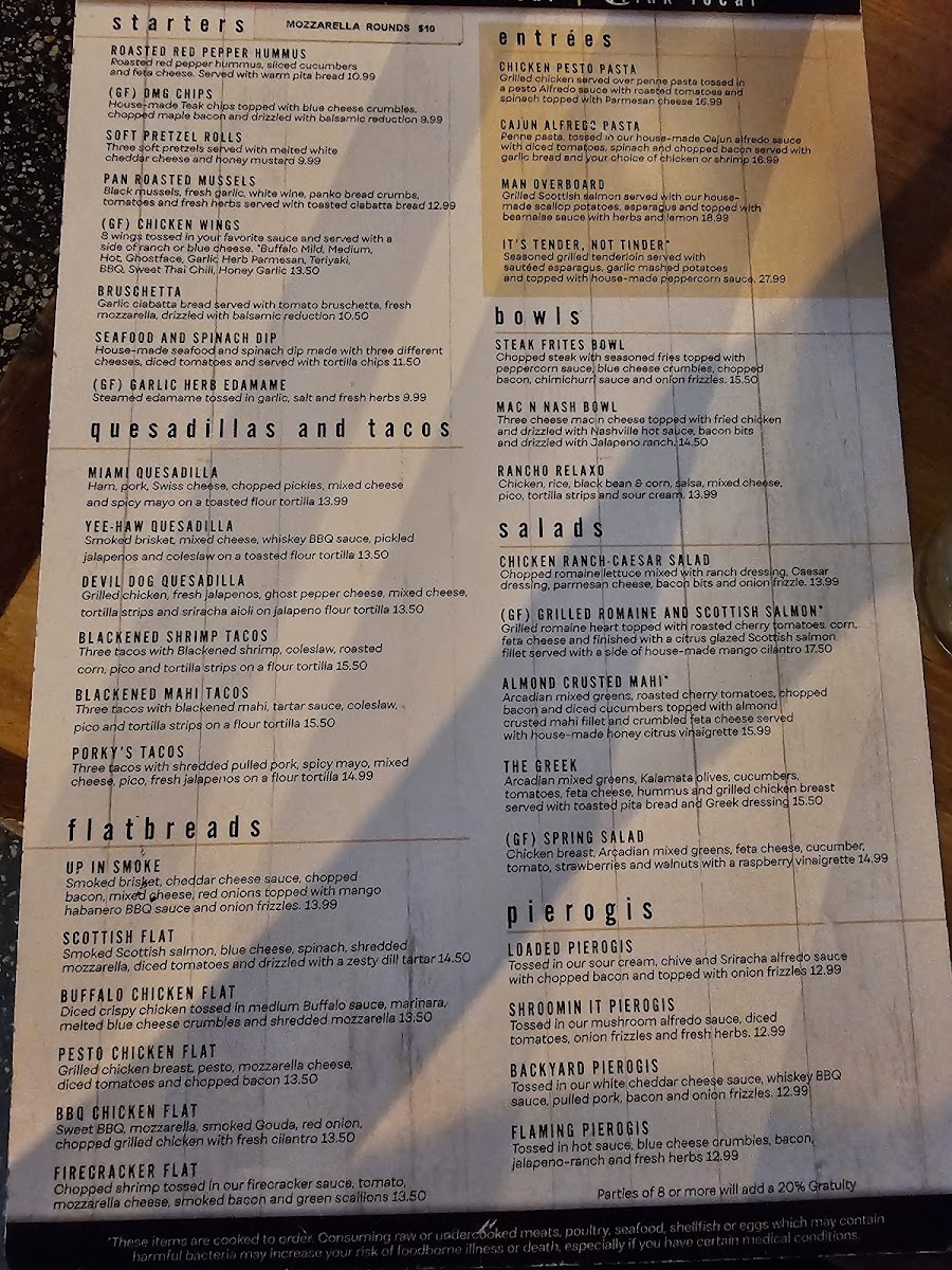 “ My wife and I stopped in with our son for the first time; had some errands to run and needed a snack and a drink. The staff was awesome, Myriah at the bar was friendly and professional and offered great suggestions. She even walked us around and showed us the other dining and bar areas. We had the OMG chips, edamame, donut burger, grandmas chicken and the engine oil. Everything was very tasty! We had the opportunity to meet the owner, a military veteran who takes care of his staff, is passionate about the food and drinks he serves and has a great local following. We had great conversations with other fellow patrons and look forward to our next visit. Definitely a place to relax to enjoy the food and service. The patio and speakeasy are a must see. ”